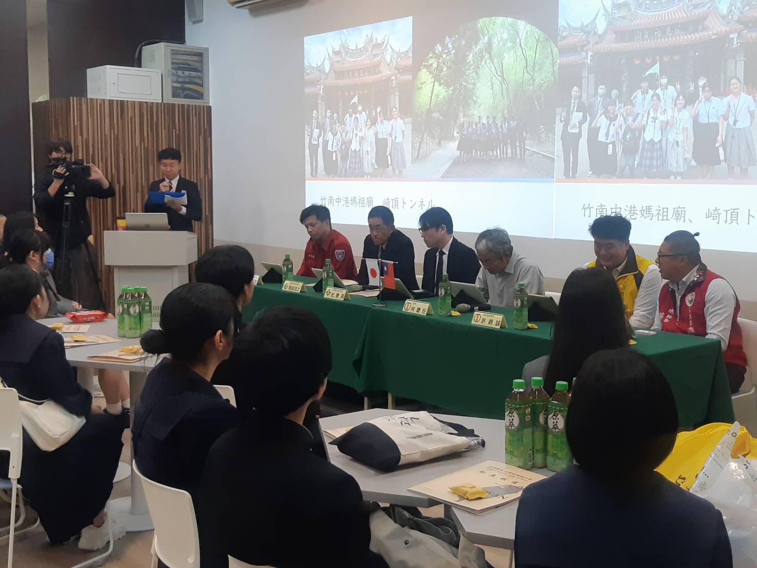 日本德島縣立脇町高校師生一行20人,來到臺灣進行六天的國際參訪,今天(12/11)下午與苗栗縣君毅中學進行跨國交流,雙方學校代表互贈紀念品,苗栗縣觀光協會、苗栗縣義勇消防隊造橋分隊也都派員到場與會,針對文化和地震防災等議題展開研討,互動相當熱絡。