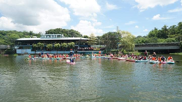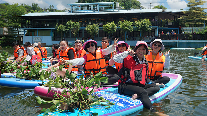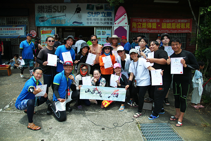來自苗栗縣特殊教育學校、桃園市關懷弱勢慈善協會、新竹世光教養院、桃園中埔國小特教生及新竹縣網路關懷互動協會樂齡長輩,踏上人生第一次的水上探險——SUP立槳初體驗!