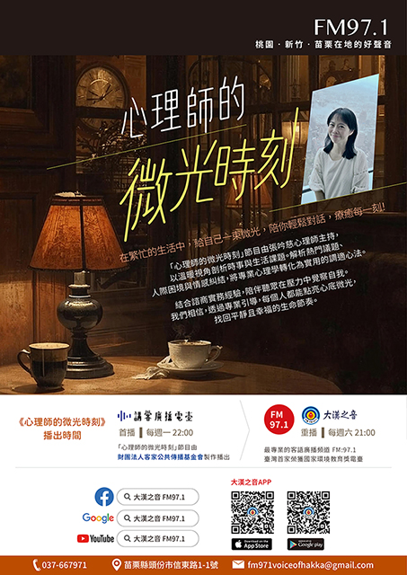 「心理師的微光時刻」節目由財團法人客家公共傳播基金會製作播出