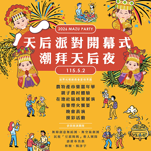 苗栗縣苑裡鎮農會主辦的 2026天后派對,將於5月2日在苑裡鎮愛情果園盛大開幕。今年活動不只恭請媽祖保佑平安,更跨界結合「霹靂布袋戲」與現代化農機具,打造一場融合傳統信仰、在地產業與潮流文化的田野盛宴,邀請全國民眾走入苑裡,感受稻米故鄉的熱情。